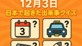 今日は12月3日。実は、日本の歴史や暮らしに関わる「ちょっとおもしろい出来事」がいくつも起きた日です。この記事では、12月3日の日本にまつわる出来事をクイズ形式で紹介します。歴史・文化・科学・エンタメまで、気軽にチャレンジしてみてください!...